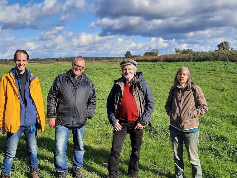 Mitte Oktober 2021 besuchten Mitarbeiter*innen vom BUND Sachsen-Anhalt vom Klimabonusprojekt und vom Interpyro-Projekt des RKW Sachsen-Anhalt einen landwirtschaftlichen Betrieb im Rhinluch zu einem Erfahrungsaustausch zu moorschonender Wiesenbewirtschaftung. Der Moorschutz- und Klimalandwirt Sebastian Petri stellte die besonderen Bewirtschaftungsmethoden und die speziellen Herausforderungen des Standorts sehr anschaulich und praxisnah vor.