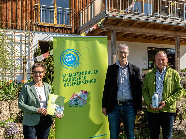 Zuletzt wurde das neu aufgelegte "Chiemgauer KlimaSparbuch" an Christoph Fischer übergeben, der mit seiner Firma als Klimabonus-Partner aktiv mit dabei ist und die KlimaSparbücher in seinem Ladengeschäft in Stephanskirchen gezielt an interessierte Kund*innen beim Kauf klimaschonender Produkte ausgibt.