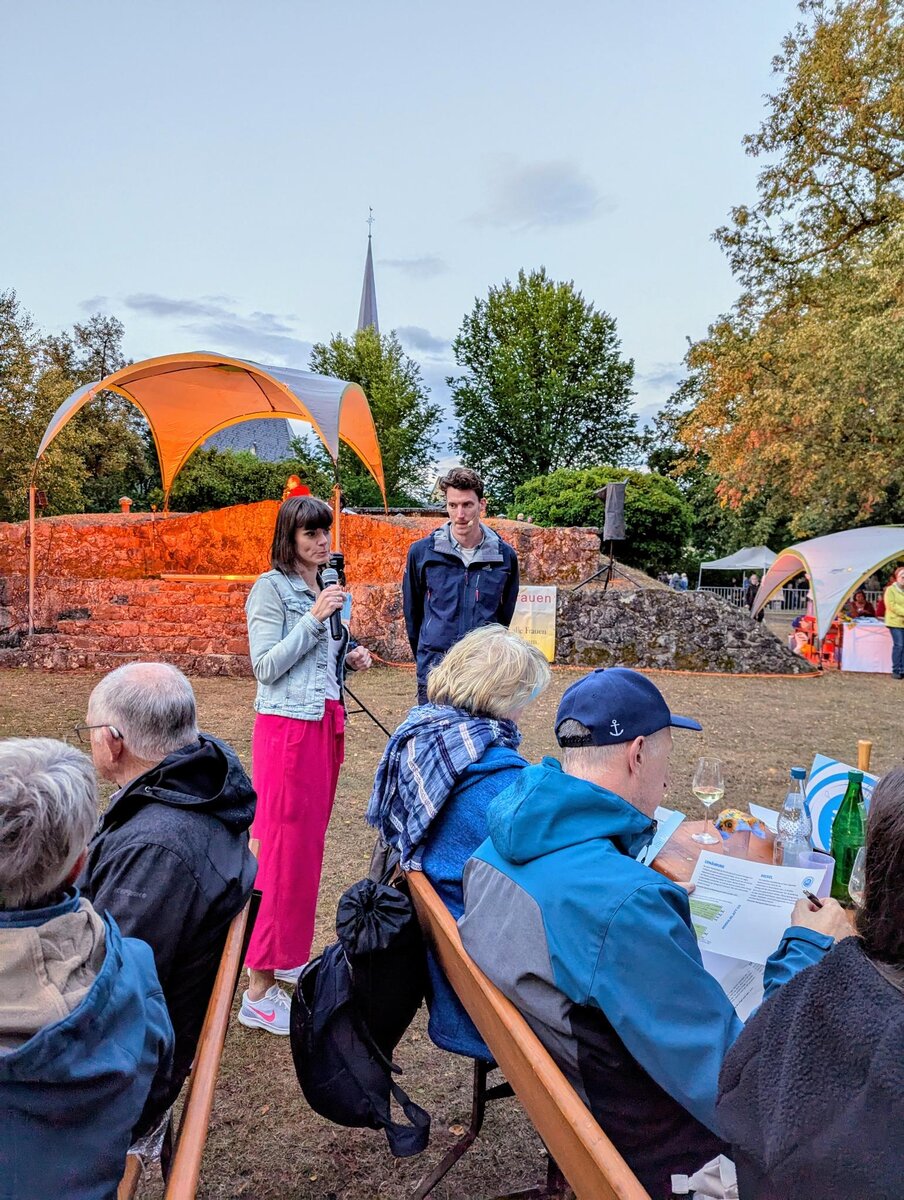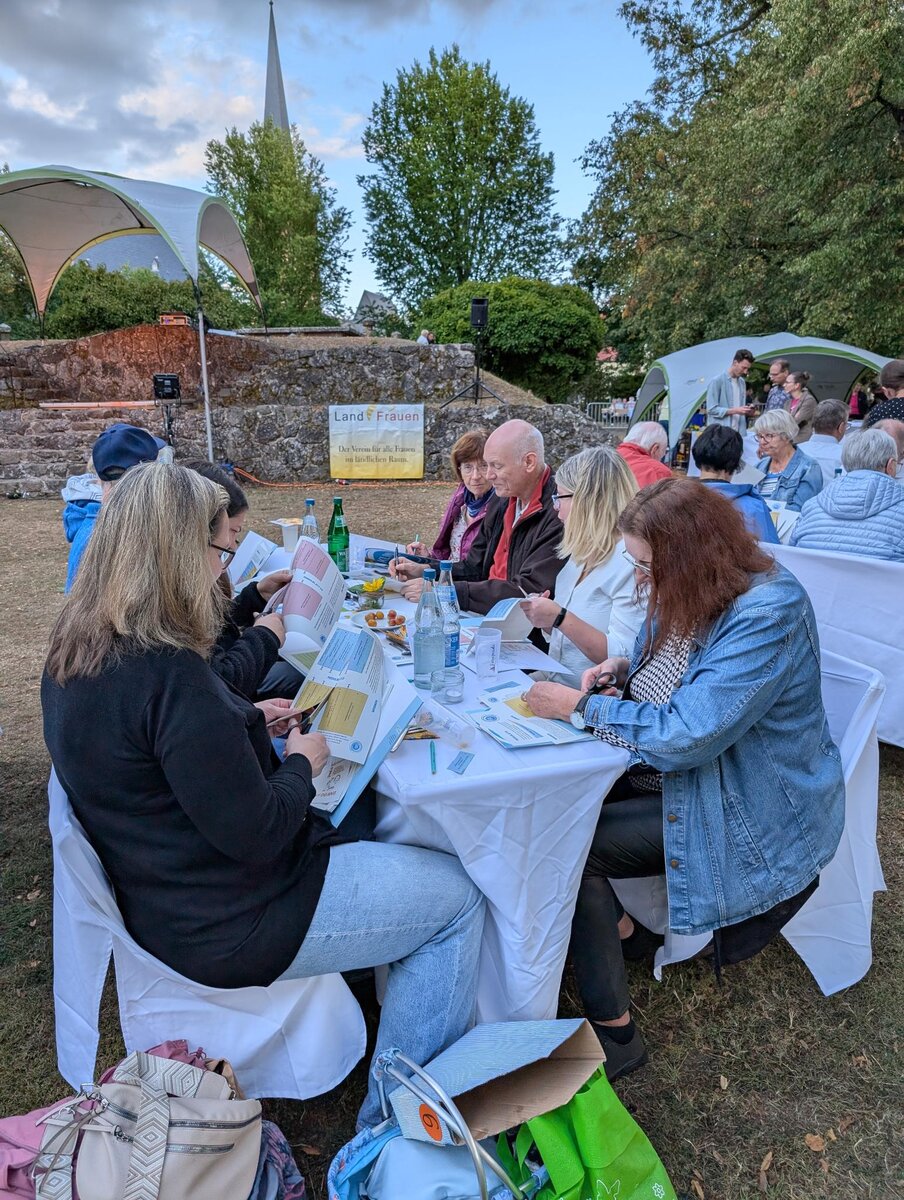 Zur Eröffnung begrüßte Bürgermeisterin Barbara Eckes die Gäste und betonte, wie wichtig das persönliche Handeln für den Erfolg gemeinsamer Klimaschutzbemühungen ist. Für die kulinarischen Höhepunkte sorgten die Landfrauenvereine aus Röddenau und Friedrichshausen/Frankenberg sowie der Bezirksvorstand der Landfrauen. Sie servierten ein regionales Drei-Gänge-Menü – überwiegend mit Zutaten aus der Region. Die NAJU Frankenberg ergänzte das Angebot mit selbstgemachtem Apfelsaft und Wasser.