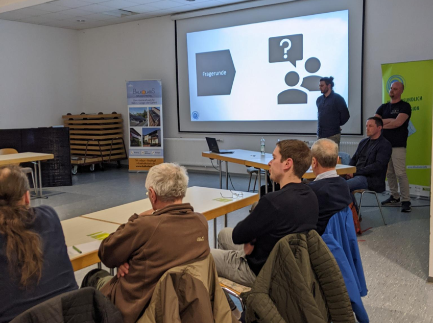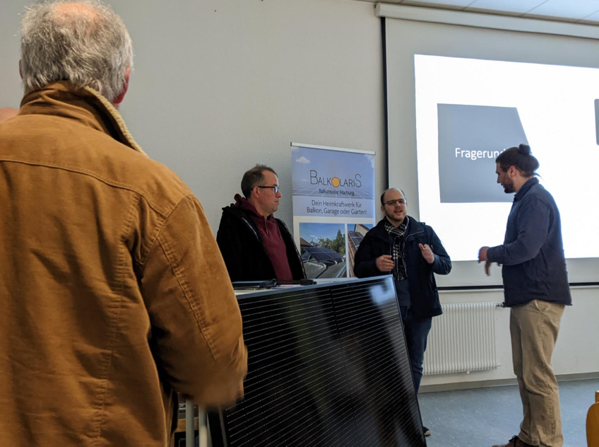 Im Anschluss an den Vortrag hatten die Besucherinnen und Besucher die Möglichkeit, in Einzelgesprächen ihre Fragen zu klären und das ausgestellte Balkonkraftwerk-Modul samt Zubehör aus nächster Nähe zu begutachten.