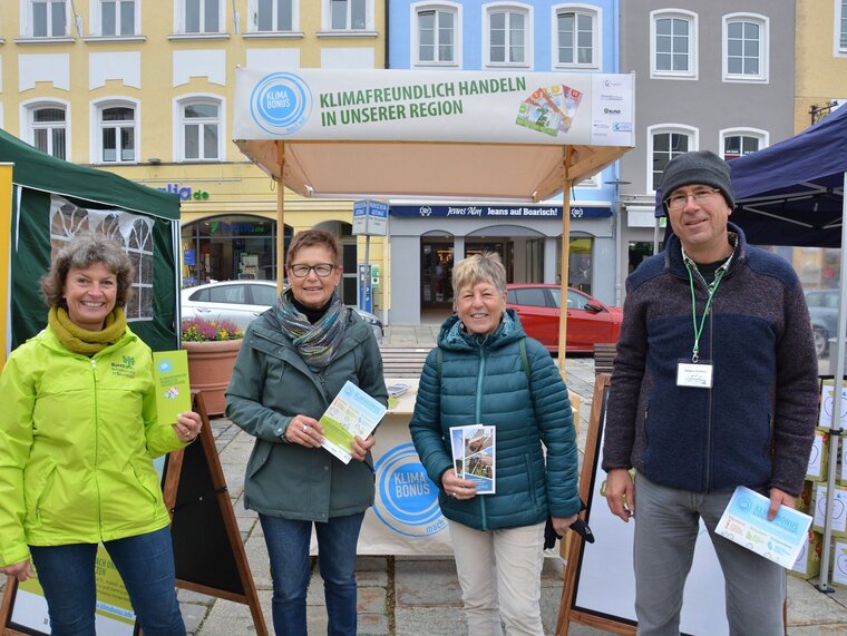 Der Klimabonus war am vergangenen Sonntag mit einem Infostand auf dem gut besuchten Apfelmarkt in Traunstein vertreten. Es wurden intensive Gespräche geführt und über Möglichkeiten diskutiert, wie der eigene CO2-Fußabdruck verringert werden kann.