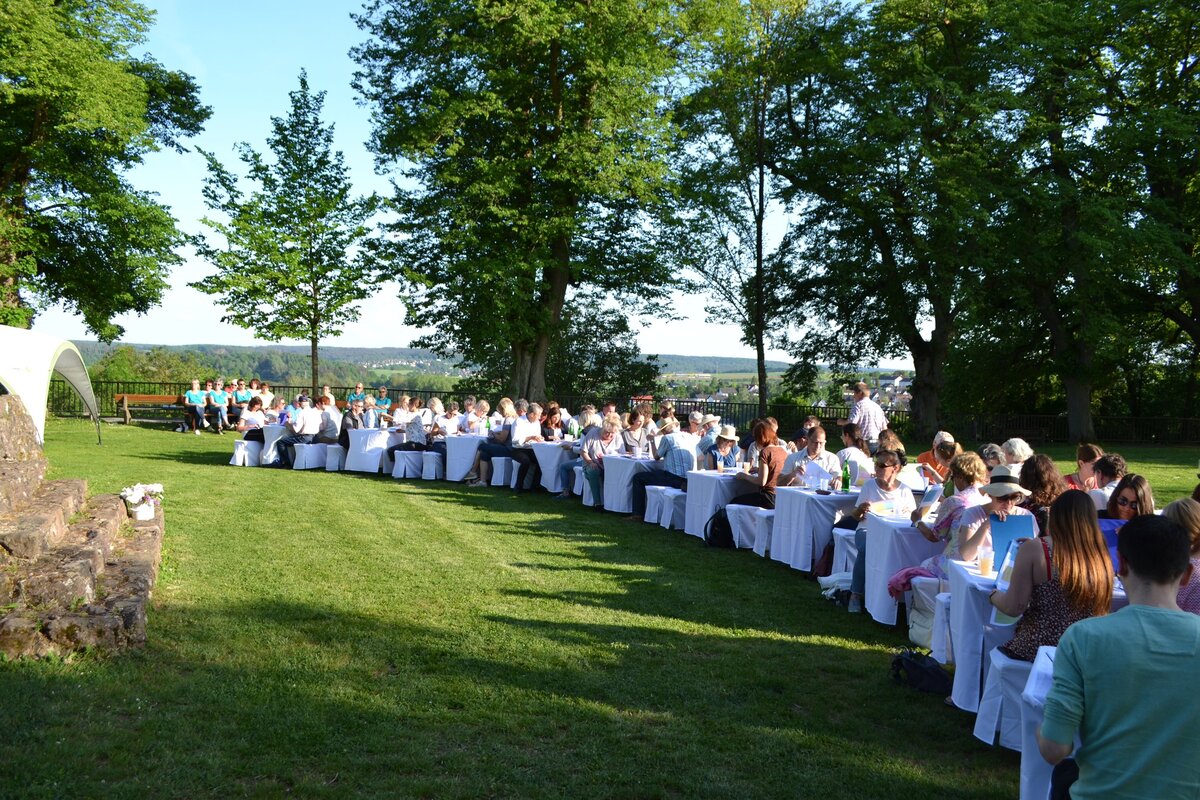 Ein großartiges Klimadinner mit über 60 Gästen fand am 18.5. auf dem Burgberg in Frankenberg statt. Das Klimabonus-Team der Region Burgwald-Ederbergland richtete dies zusammen mit der Stadt Frankenberg aus.