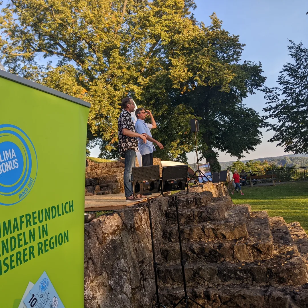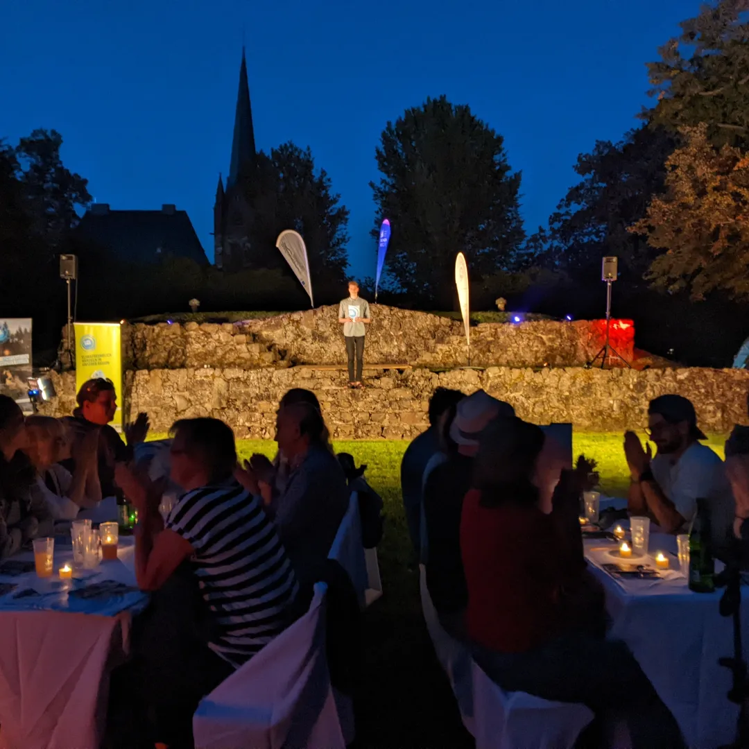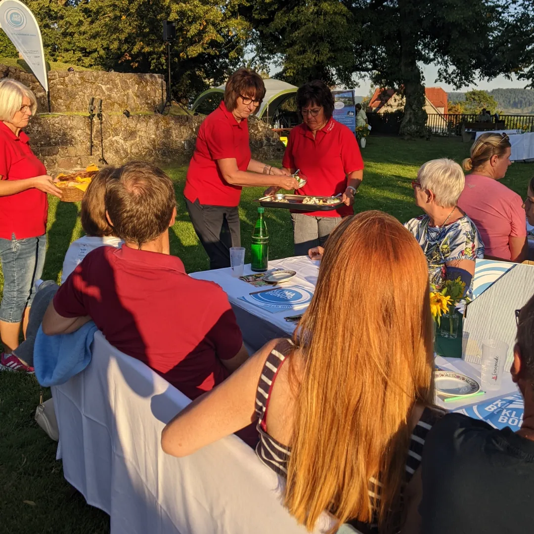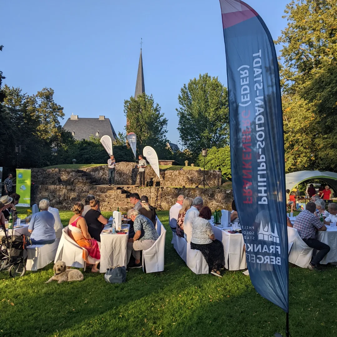 Am 09.09.2023 fand zum wiederholten Male das Klimadinner in Frankenberg statt. Bei strahlendem Sonnenschein wurden die rund 40 Gäste in der atemberaubenden Kulisse des Burgbergs vom Klimabonus und der Stadt Frankenberg empfangen.