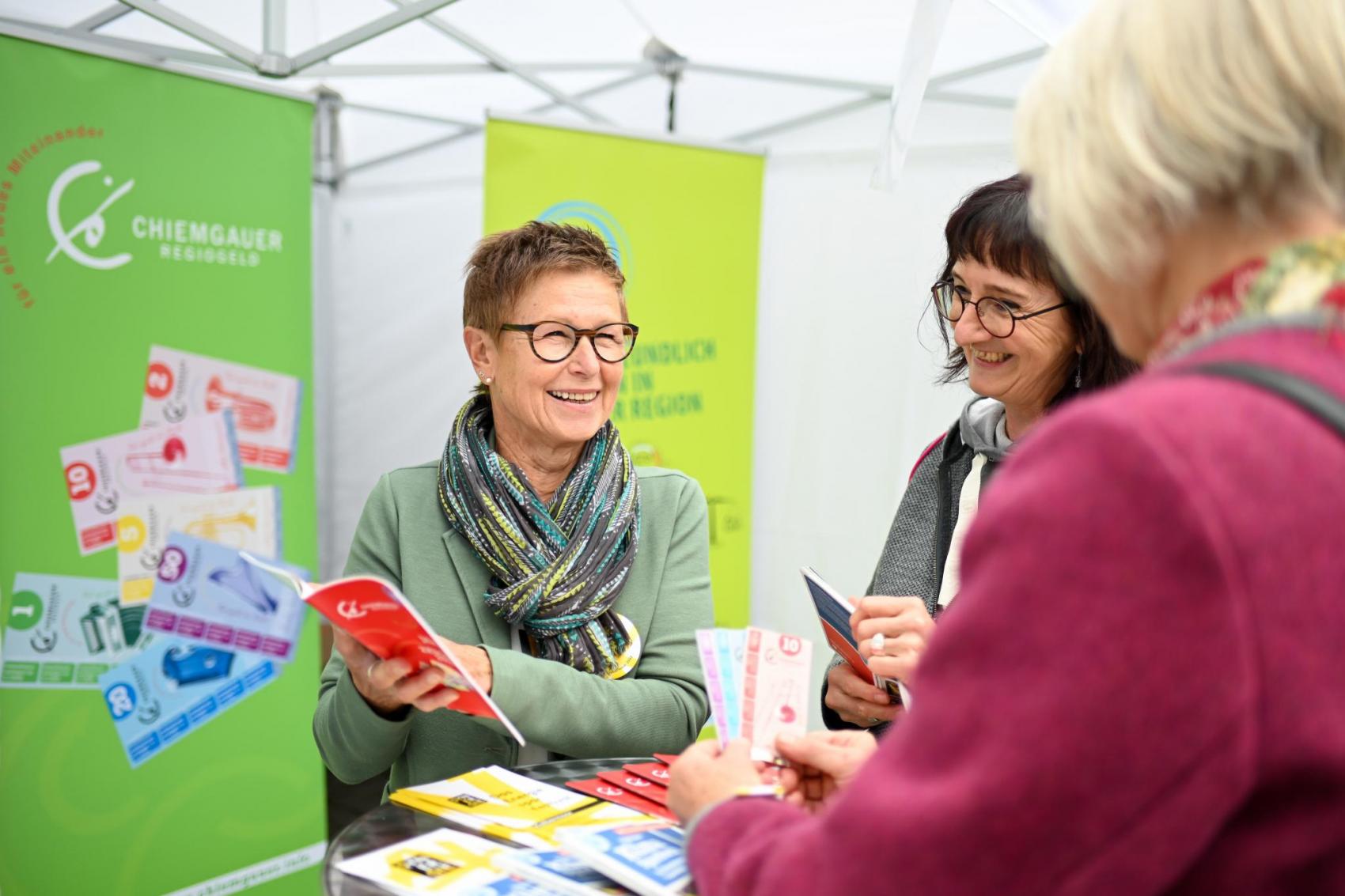 Unsere Handreichungen "Chiemgauer KlimaSparbuch" und "Chiemgauer Jahresverzeichnis" wurden als kompakte Ratgeber, einmal zum klimafreundlichen Verhalten im Alltag und zum Anderen zur regionalen Wertschöpfung durch die Verwendung der Regionalwährung Chiemgauer, gerne mitgenommen.