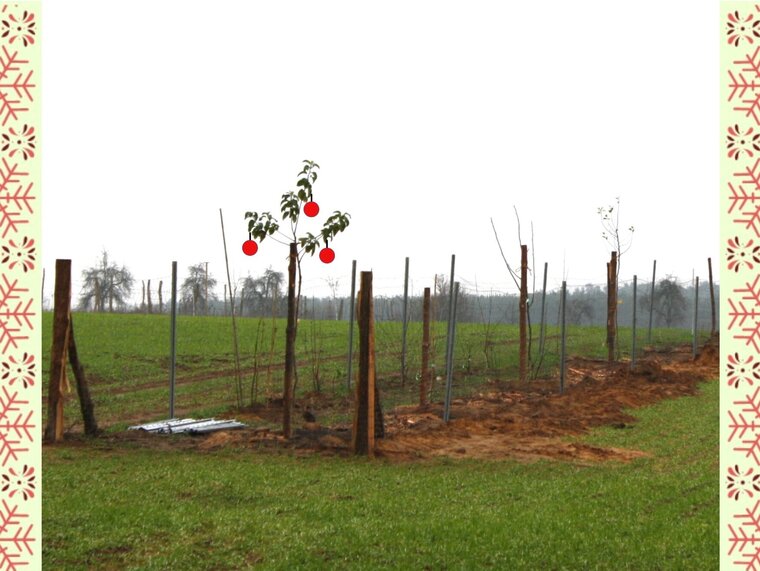 Durch die Baumbiomasse, die regionale Obsternte und den Humusaufbau im Boden können 114 t CO2 gespeichert werden. Mit deinem Beitrag werden wichtige Untergliederungen durch Baumstreifen und Hecken in einer großräumigen Agrarlandschaft angelegt.