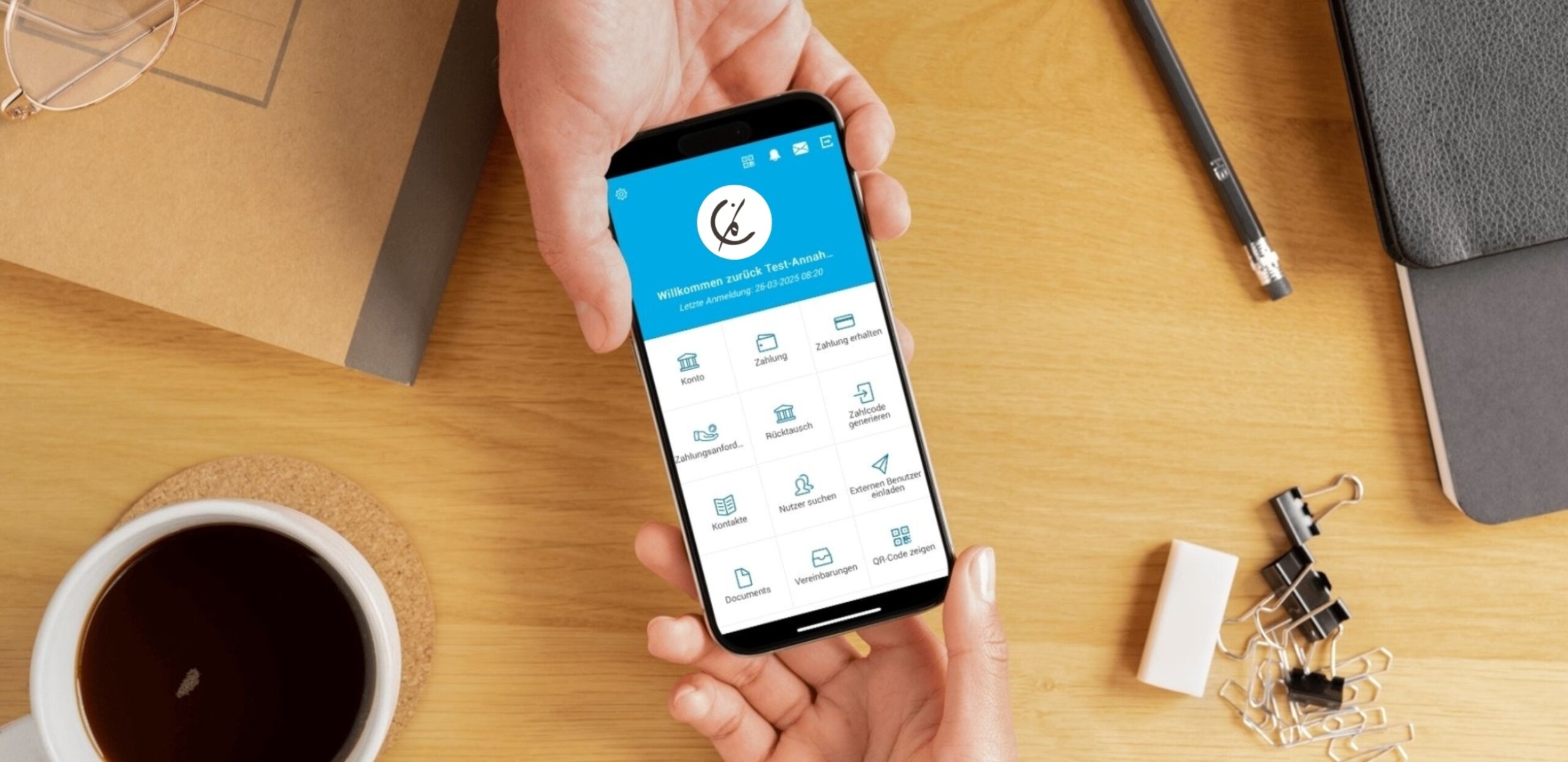 Über unsere Web-Oberfläche kannst Du ganz einfach auf dein Konto zugreifen, Zahlungen tätigen oder empfangen.