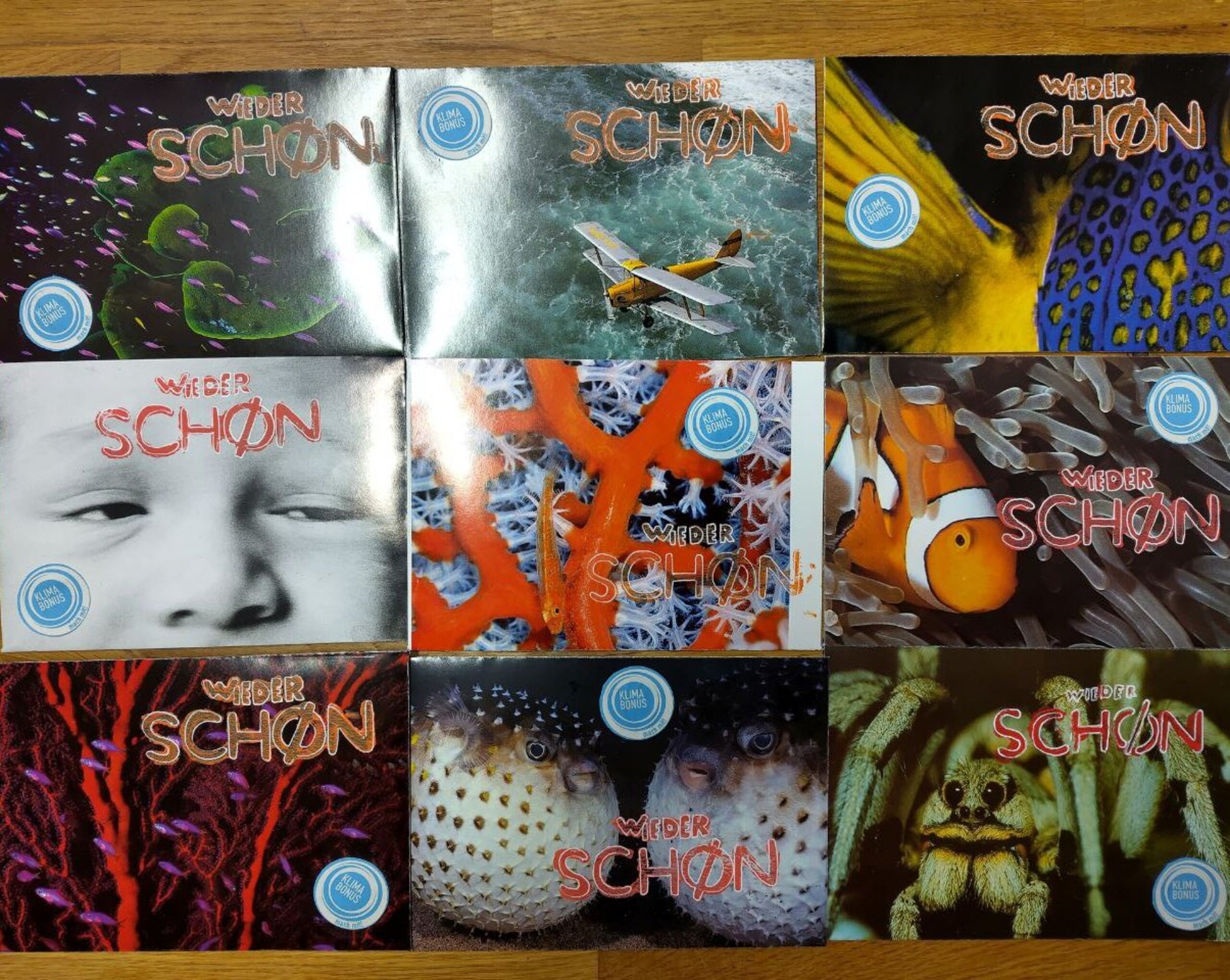 Unsere schönen Klimabonus-Scheine sind ein tolles Geschenk für jeden Anlass. Mit den Klimaboni können die Beschenkten in einem teilnehmenden Geschäft ihrer Wahl einkaufen. Den Klimabonus zum Verschenken gibt es in liebevoll gestalteten Umschlägen. Und weil Ressourcen sparen uns wichtig ist haben wir auch hier auf Wiederverwenden statt Verbrauchen gesetzt. Die Umschläge sind aus upgecyclten Magazinen und Büchern. Die erste Charge verhilft so einem aussortierten Buch über Meeresbewohner zum zweiten Leben an Land.